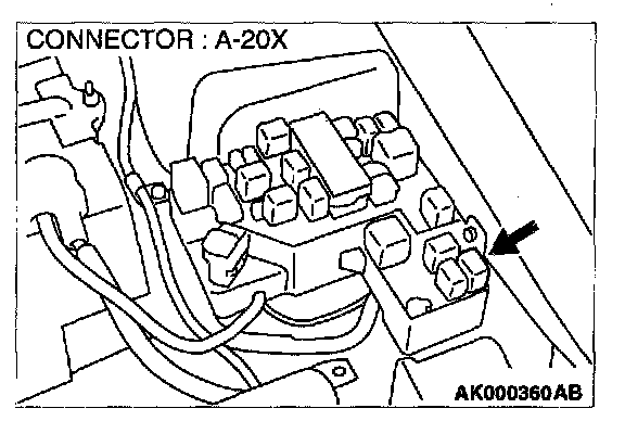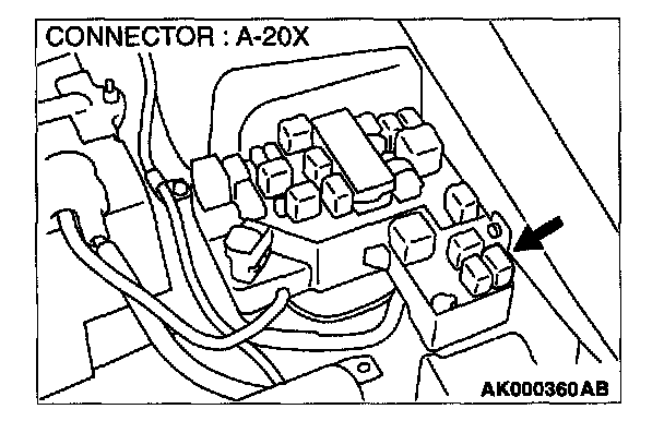 STEP 5. Check connector A-20X at fuel pump relay for damage.