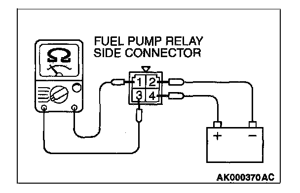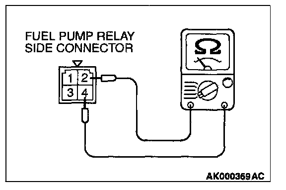 2. Check for continuity between the fuel pump relay terminals 2 and 4.