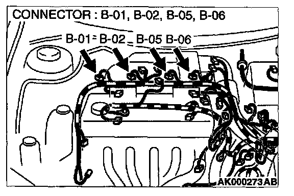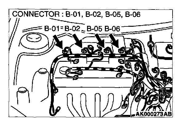 1. Disconnect the injector connector B-01, B-02, B-05, B-06.