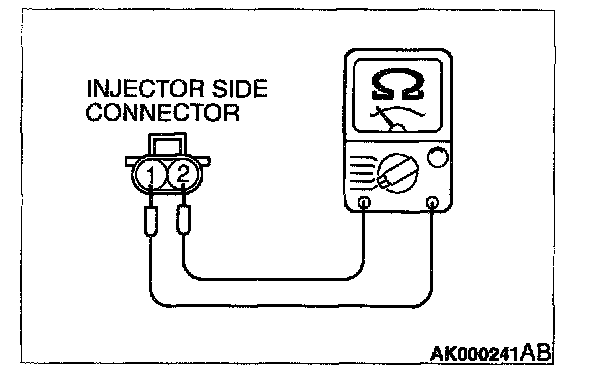 2. Measure the resistance between each injector side connector terminal 1 and 2.