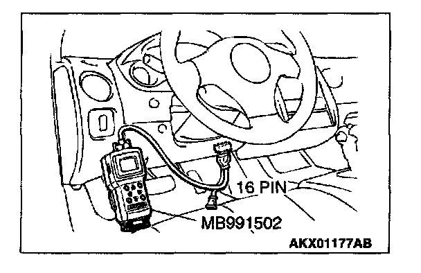 1. Connect scan tool MB991502 to the data link connector.
