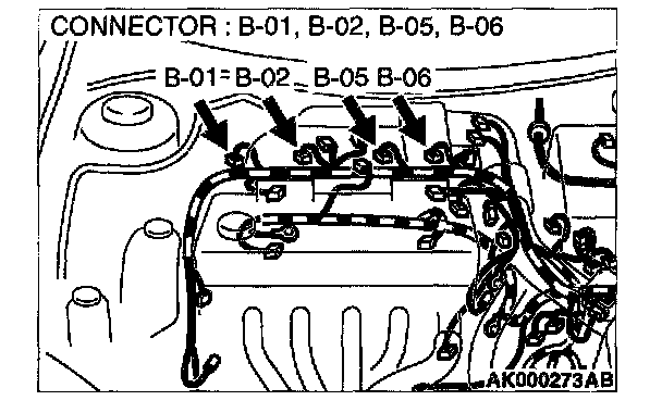 1. Disconnect the injector connector B-01, B-02, B-05, B-06.