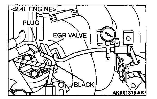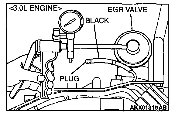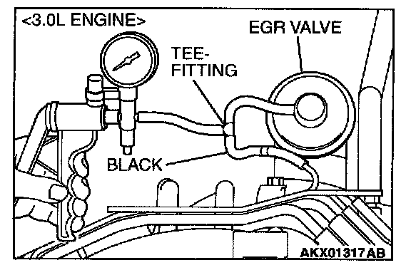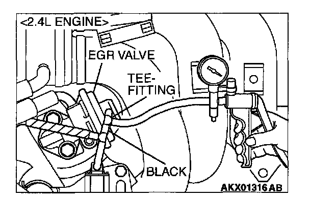1. Disconnect the vacuum hose (black) from the EGR valve, and then connect a hand vacuum pump via the Tee-fitting.