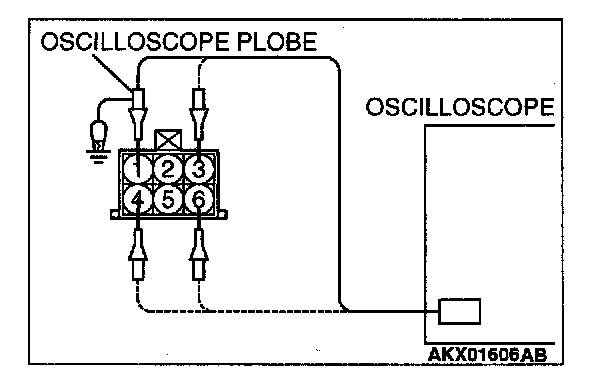 2. Connect the oscilloscope probe to the idle air control motor connector terminal 1, terminal 3, terminal 4 and terminal 6, respectively.