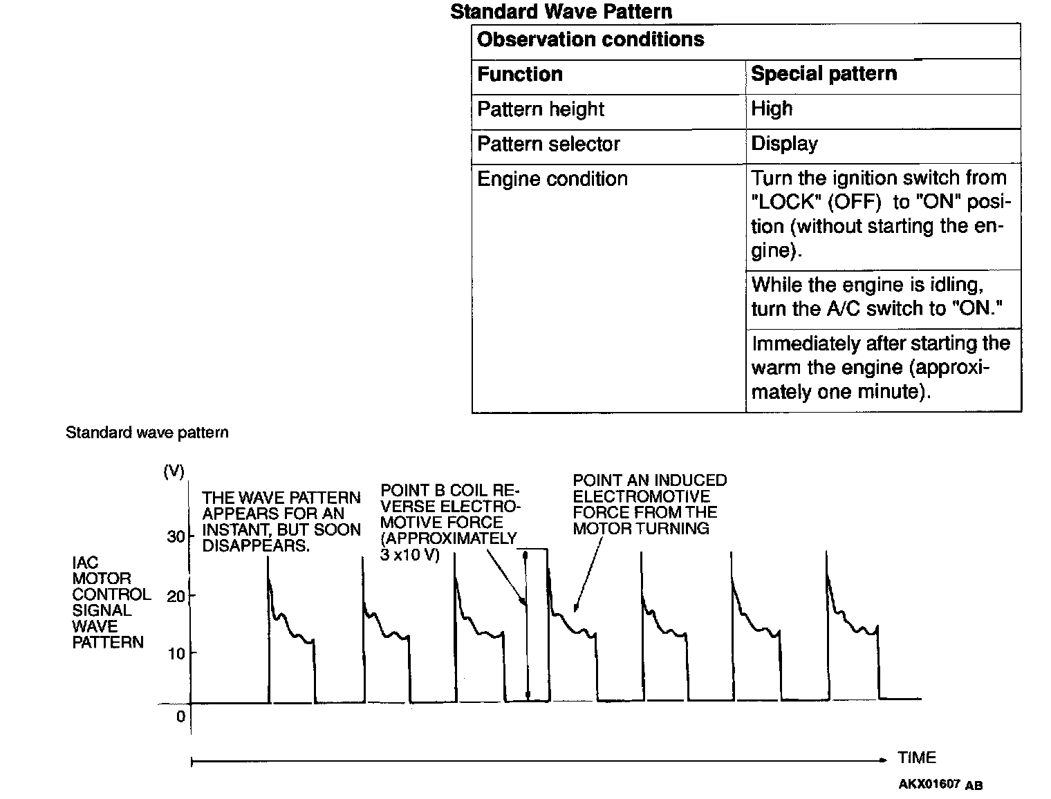 Check that the standard wave pattern appears when the idle air control motor is operating.