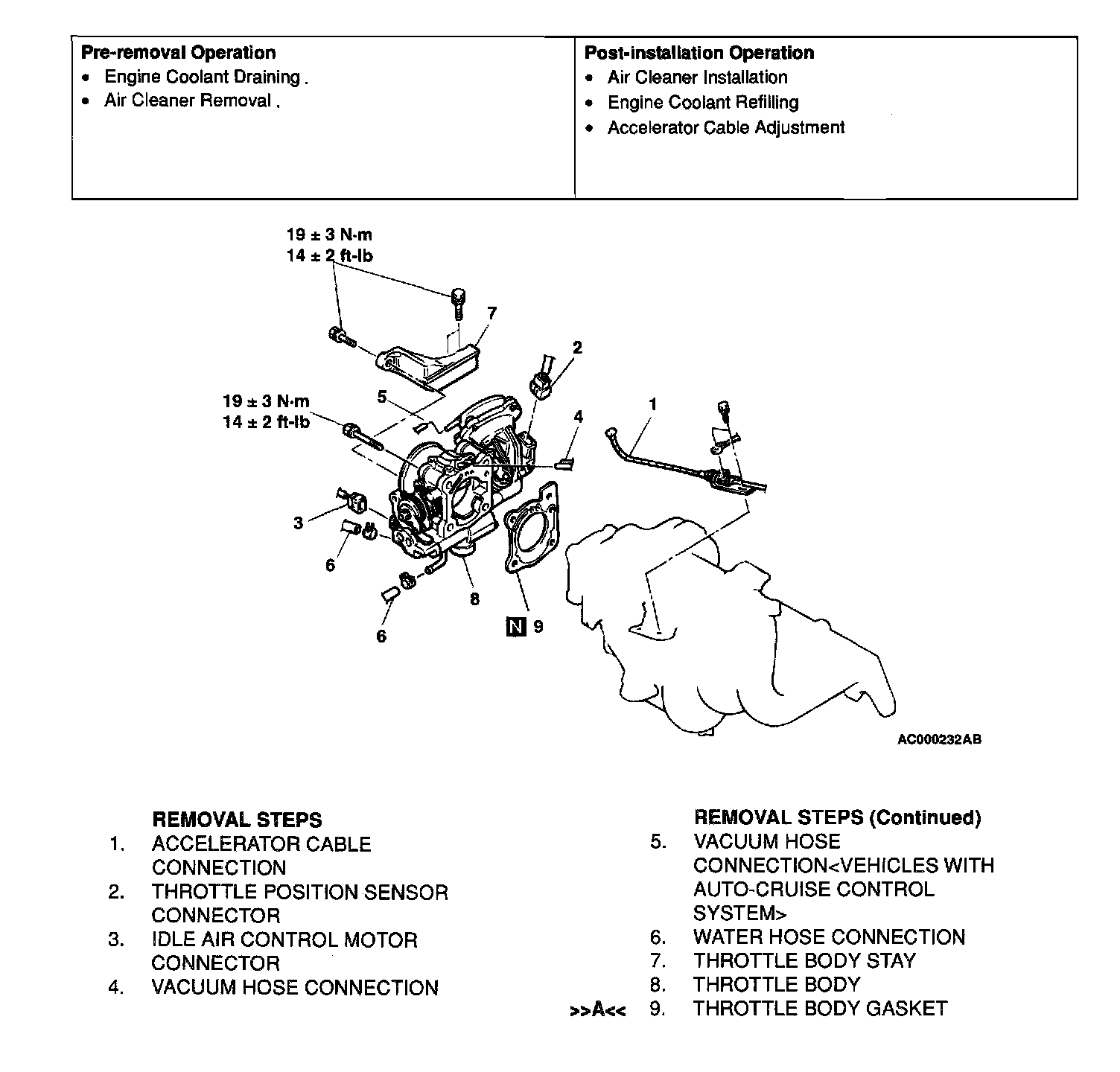 Poor idling etc. may result if the throttle body gasket is installed incorrectly.