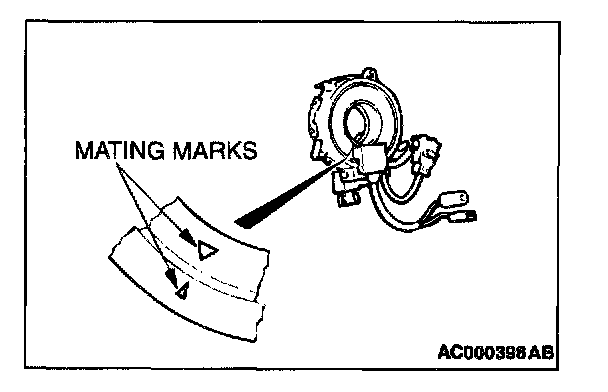 WARNING: Ensure that the clock spring's mating marks are properly aligned. If not, the steering wheel may not rotate completely during a turn, or the flat cable in the clock spring could be damaged. This would prevent normal SRS operation and possibly cause serious injury to the driver.