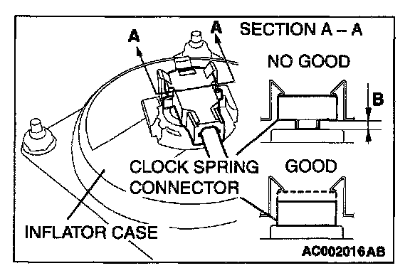 CAUTION: When disconnecting the air bag module-to-clock spring connector, take care not to apply excessive force to it.