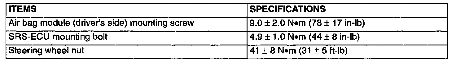 Fastener Tightening Specifications:
