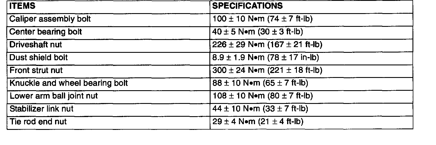 Fastener Tightening Specifications