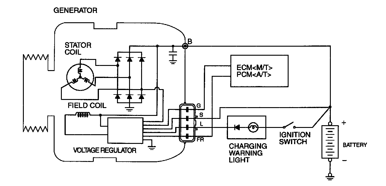 GENERAL DESCRIPTIONThe charging system charges the battery with the generator output to keep the battery charged at a constant level during varying electrical load.