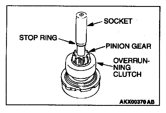 1. Using a suitable pulling tool, pull the overrunning clutch stop ring over the snap ring.