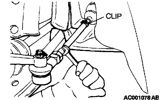 3. Adjust the toe-in by undoing the clip and turning the left and right tie rod turnbuckles by the same amount (in opposite directions).