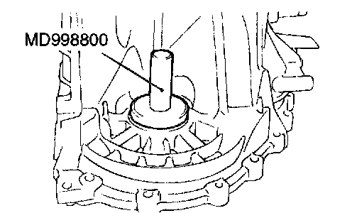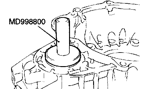 Use special tool MD998800 to tap the oil seal in the transaxle case.