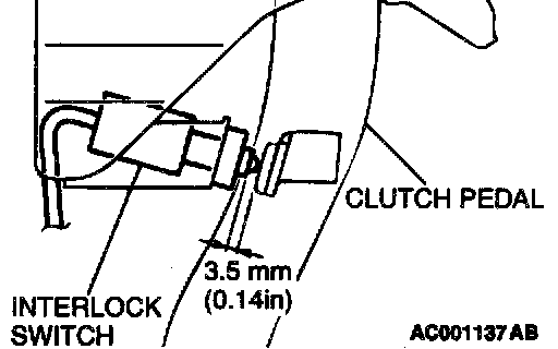 2. Connect an ohmmeter to the interlock switch connector, and then check for continuity when the clutch pedal is fully depressed and when it is released outward.