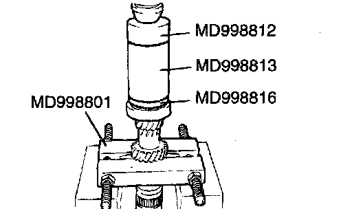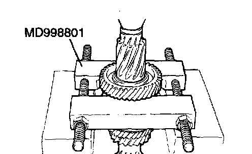 1. Using special tool MD998801, support the 5th speed gear, and then set them on the press.