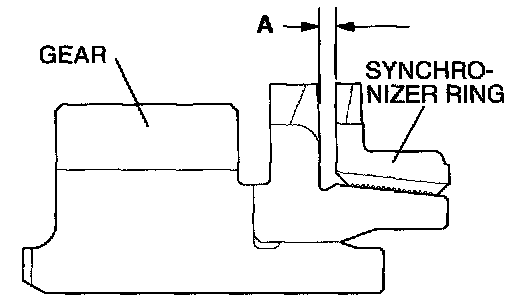 3. Force the synchronizer ring toward the clutch gear and check clearance "A". If "A" is less than the limit, replace.