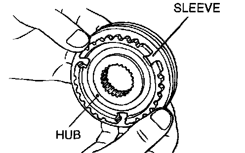 1. Combine the synchronizer sleeve and hub, and check that they slide smoothly.