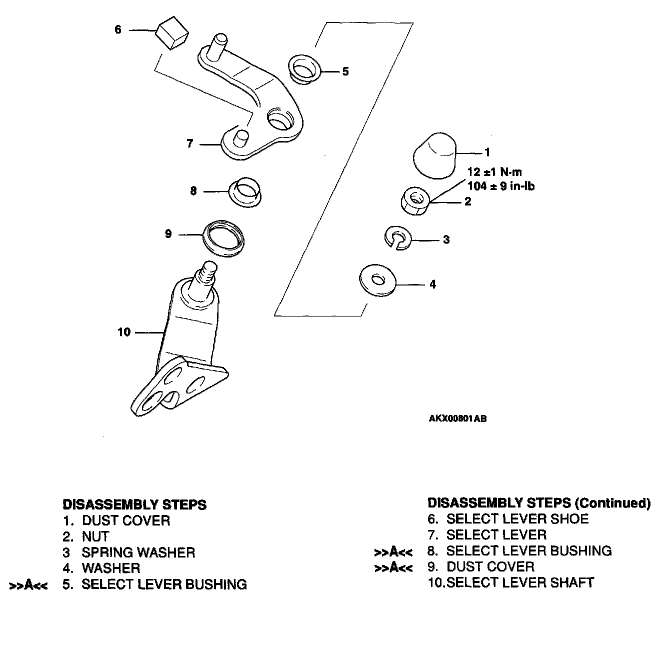 Use the figure to make sure the dust cover and select lever bushing installation direction is correct, and the distinguished parts are correctly assembled.