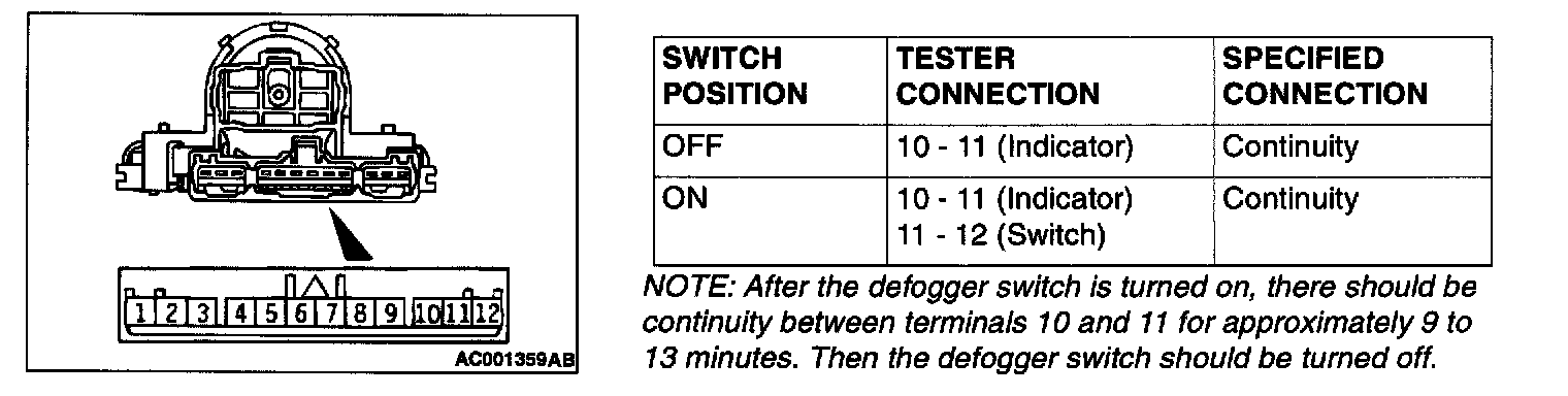 Defogger Switch Continuity Check: