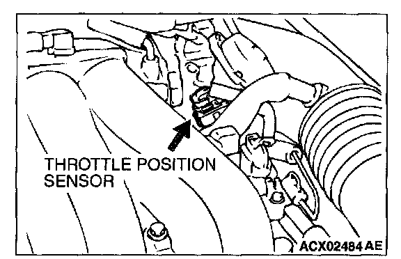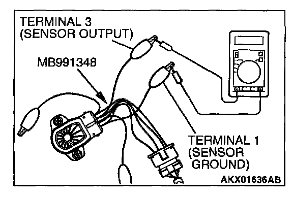 1. Disconnect the throttle position sensor connector, and connector special tool MB991348 in between. (All terminals should be connected.)