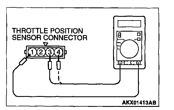 3. Measure the resistance between throttle position sensor side connector terminals 1 and terminal 3.