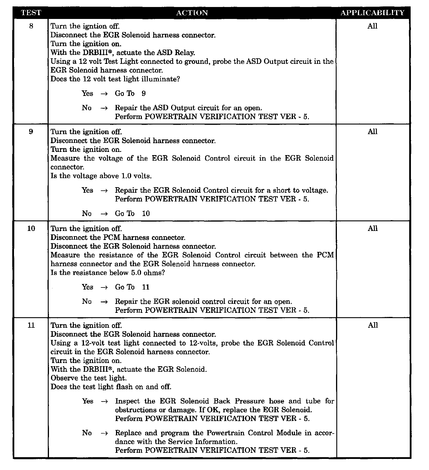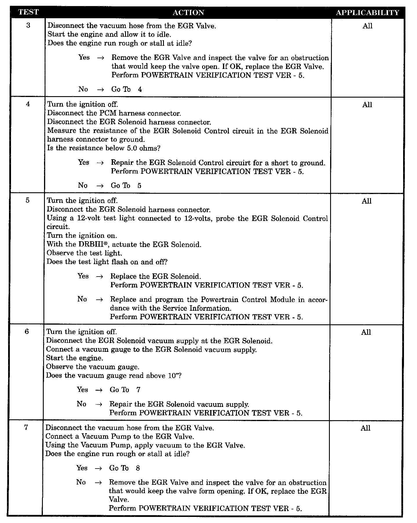 Conditions are met, the EGR is turned OFF and ON momentarily. The oxygen sensor signal is monitor for changes in its output signal during this test. If no significant change or too much change is seen, a flag is set.