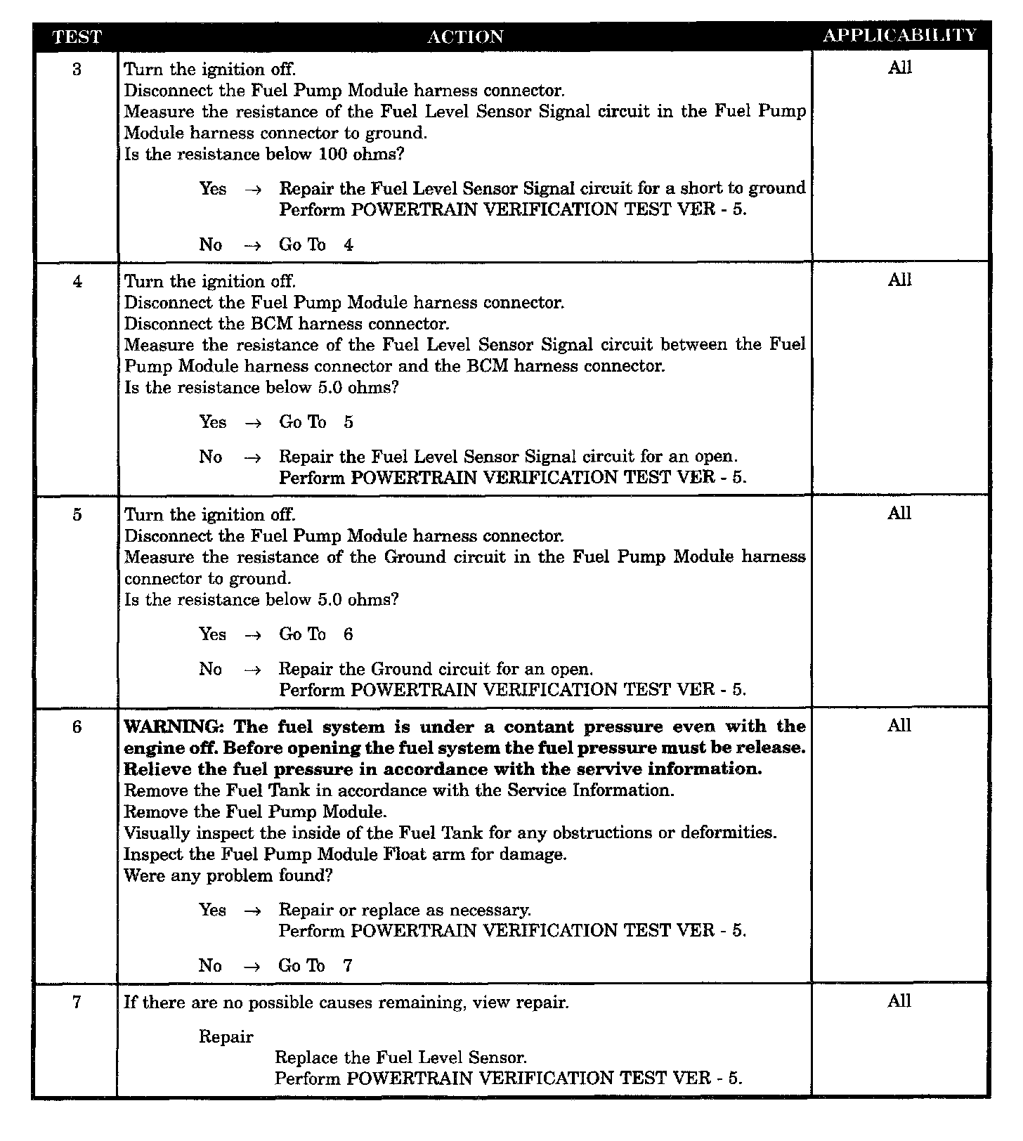 TEST # 1: If the PCM does not see a difference in fuel level of greater than 0.1 volt the test will fail.
