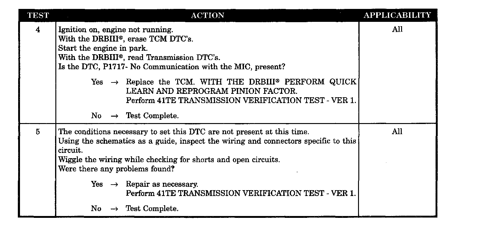 Set Condition: The code sets in approximately 25 seconds if no BUS messages are received form the MIC.