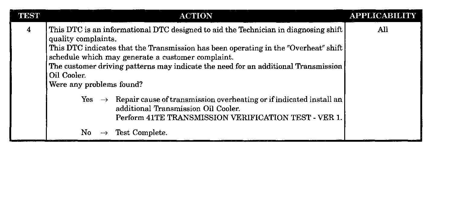 Set Condition: Immediately when the Overheat shift schedule is activated (240 degrees Trans oil temp).
