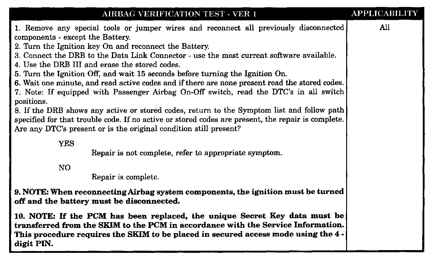 Airbag System Verification Test