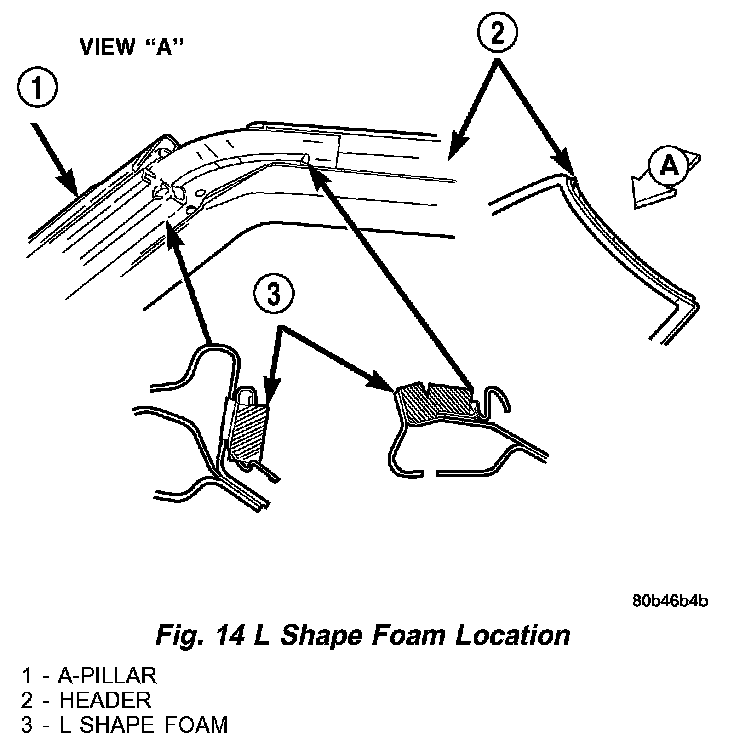 2. Install new L foam starting at upper screw on A-pillar retainer (Fig. 14).