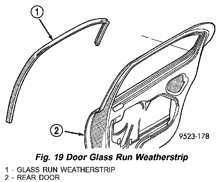2. Pull glass run weatherstrip from door glass opening frame (Fig. 19).
