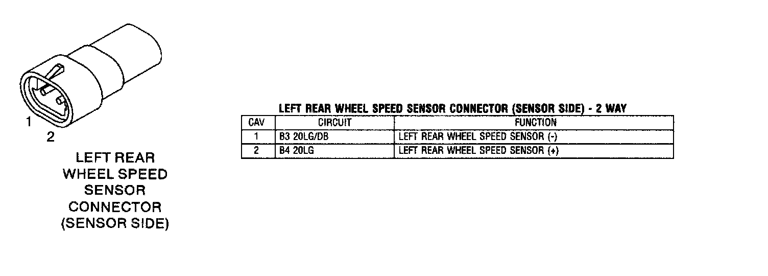 Left Rear Wheel Speed Sensor Connector (Sensor Side)