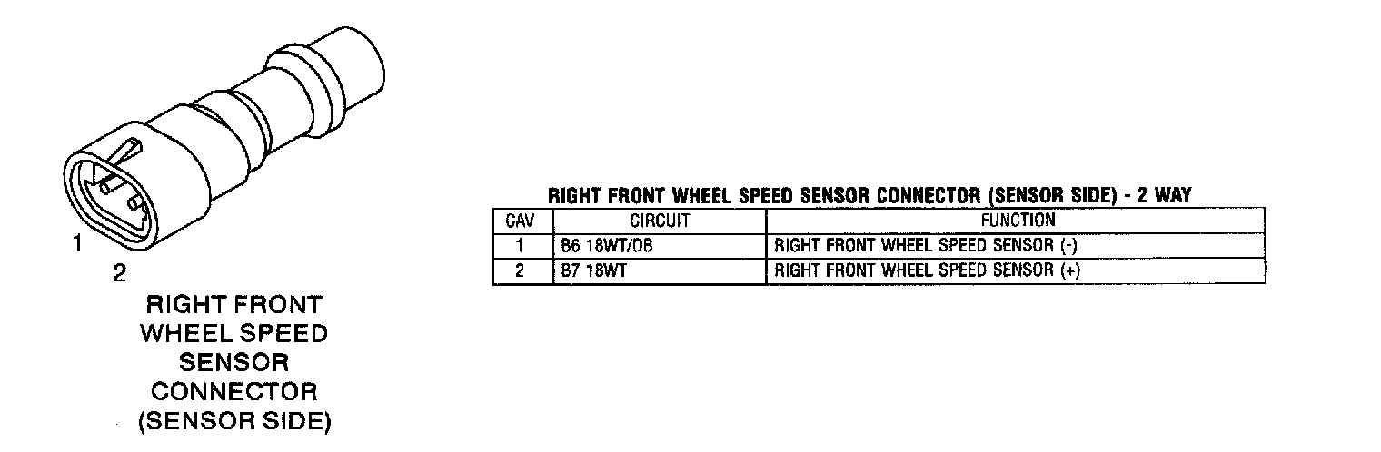 Right Wheel Front Speed Sensor Connector (Sensor Side)