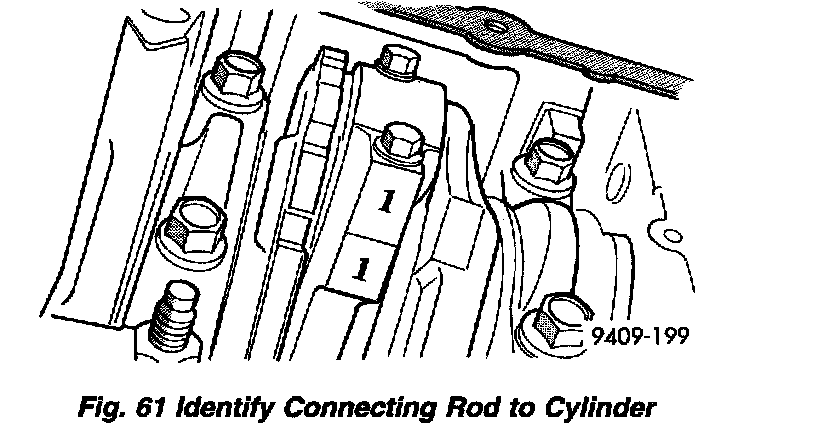 2. Remove oil pan. Scribe the cylinder number on the side of the rod and cap (Fig. 61) for identification.