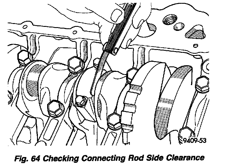 10. Using a feeler gauge, check connecting rod side clearance (Fig. 64).