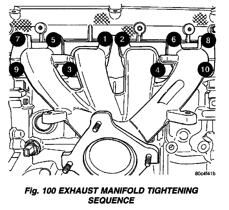 2. Position exhaust manifold in place. Tighten fasteners in sequence shown, to 23 Nm (200 inch lbs.). Repeat this procedure until all fasteners are at specified torque.
