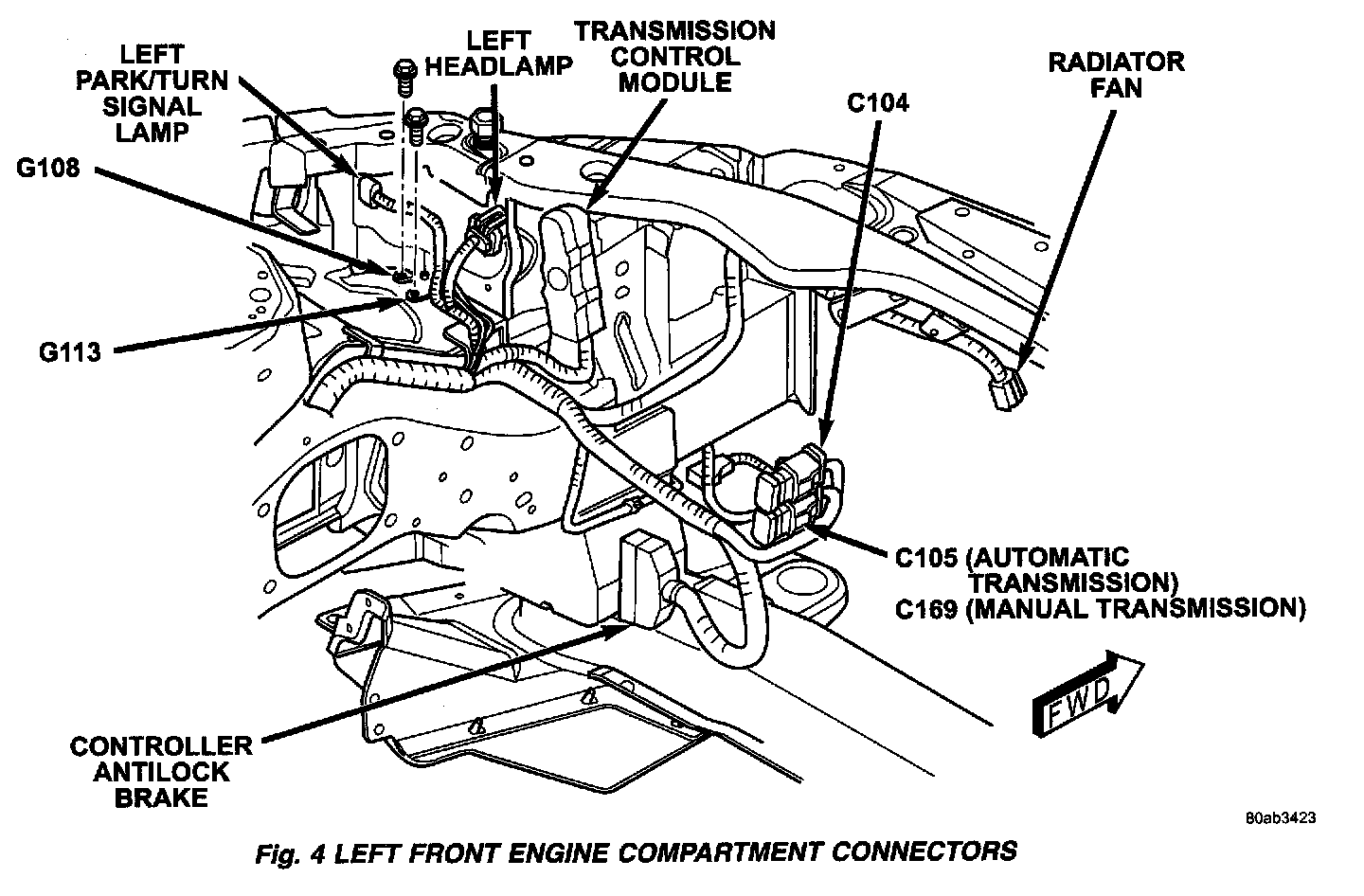 Fig.4 Left Side Engine Compartment Connectors: