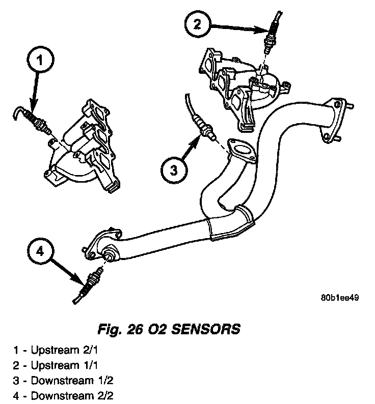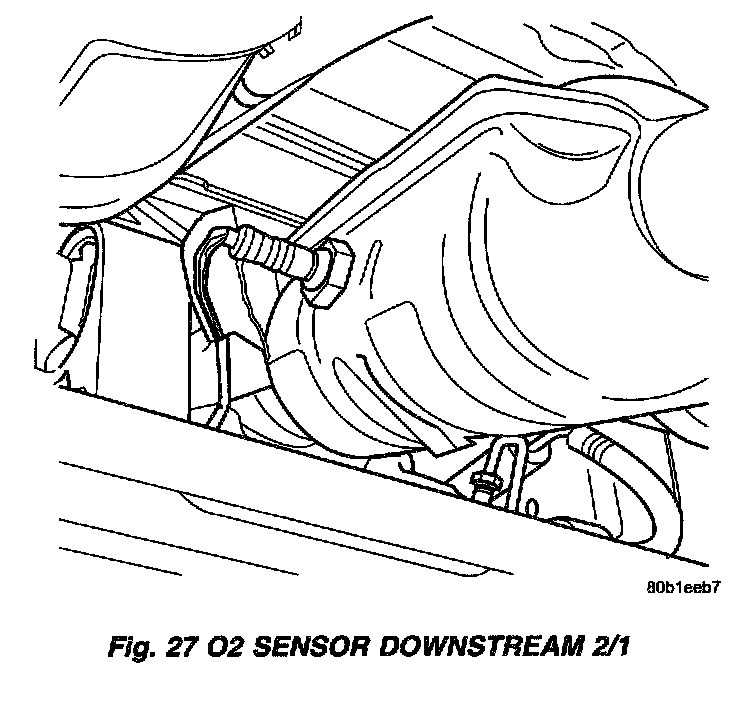 WARNING: THE EXHAUST MANIFOLD, EXHAUST PIPES AND CATALYTIC CONVERTER BECOME VERY HOT DURING ENGINE OPERATION. ALLOW ENGINE TO COOL BEFORE REMOVING OXYGEN SENSOR.