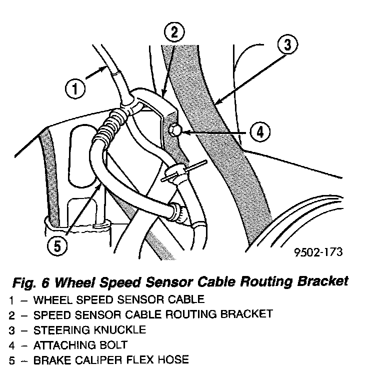 5. Remove the wheel speed sensor cable routing bracket from the steering knuckle.