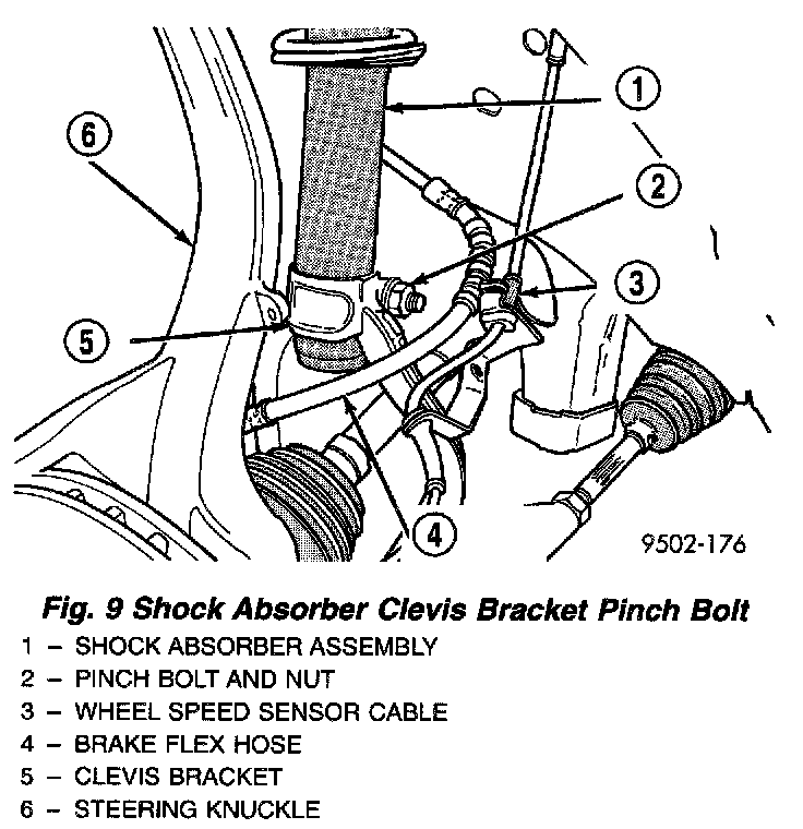 8. Remove pinch bolt attaching shock absorber clevis to shock absorber.