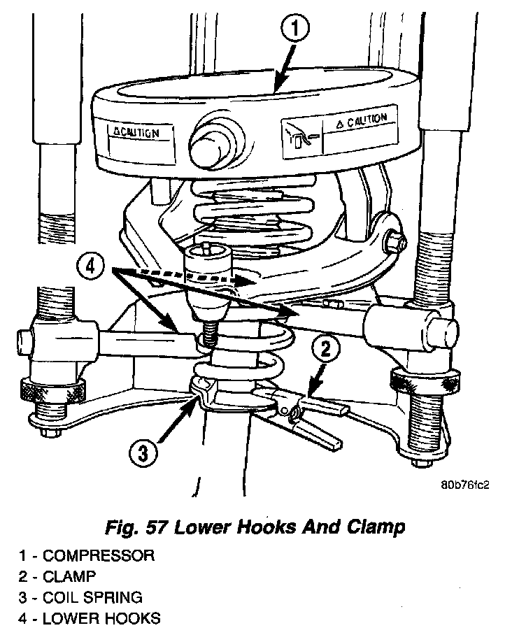 3. Compress the coil spring until all coil spring tension is removed from the upper mounting bracket.