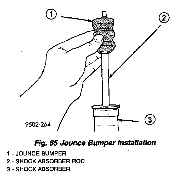 8. Install the jounce bumper on the shock rod. Install the jounce bumper with the pointed end pointing downward.