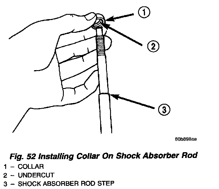 9. Install the collar, undercut side facing down, on the rod of the shock absorber. Be sure the collar is positioned squarely on the step of the shock absorber rod.