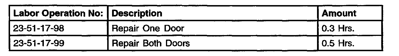 NOTE: IF ANY GROMMET FRAGMENTS FALL INTO THE DOOR, TO PREVENT POTENTIAL RATTLES, REMOVE THE WATER SHIELD FOLLOWING THE REMOVAL AND INSTALLATION INSTRUCTIONS ON MDS2, PAGE 23-40 OF THE 2002 JR INFORMATION, WHICH ALSO APPLIES TO THE 2001 MODEL YEAR. REMOVE ANY FRAGMENTS AND REINSTALL WATER SHIELD MAKING SURE THE ADHESIVE BEAD IS NOT BROKEN. FOLLOWING THIS PROCEDURE WILL AVOID ANY WATER INTRUSION.