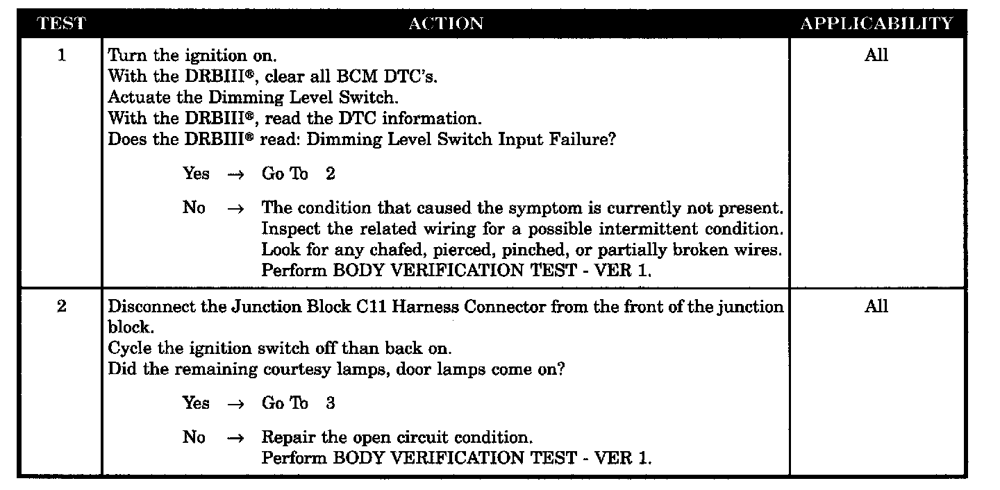 BCM detects an open or short circuit condition for 10 consecutive seconds on the dimming level switch input.