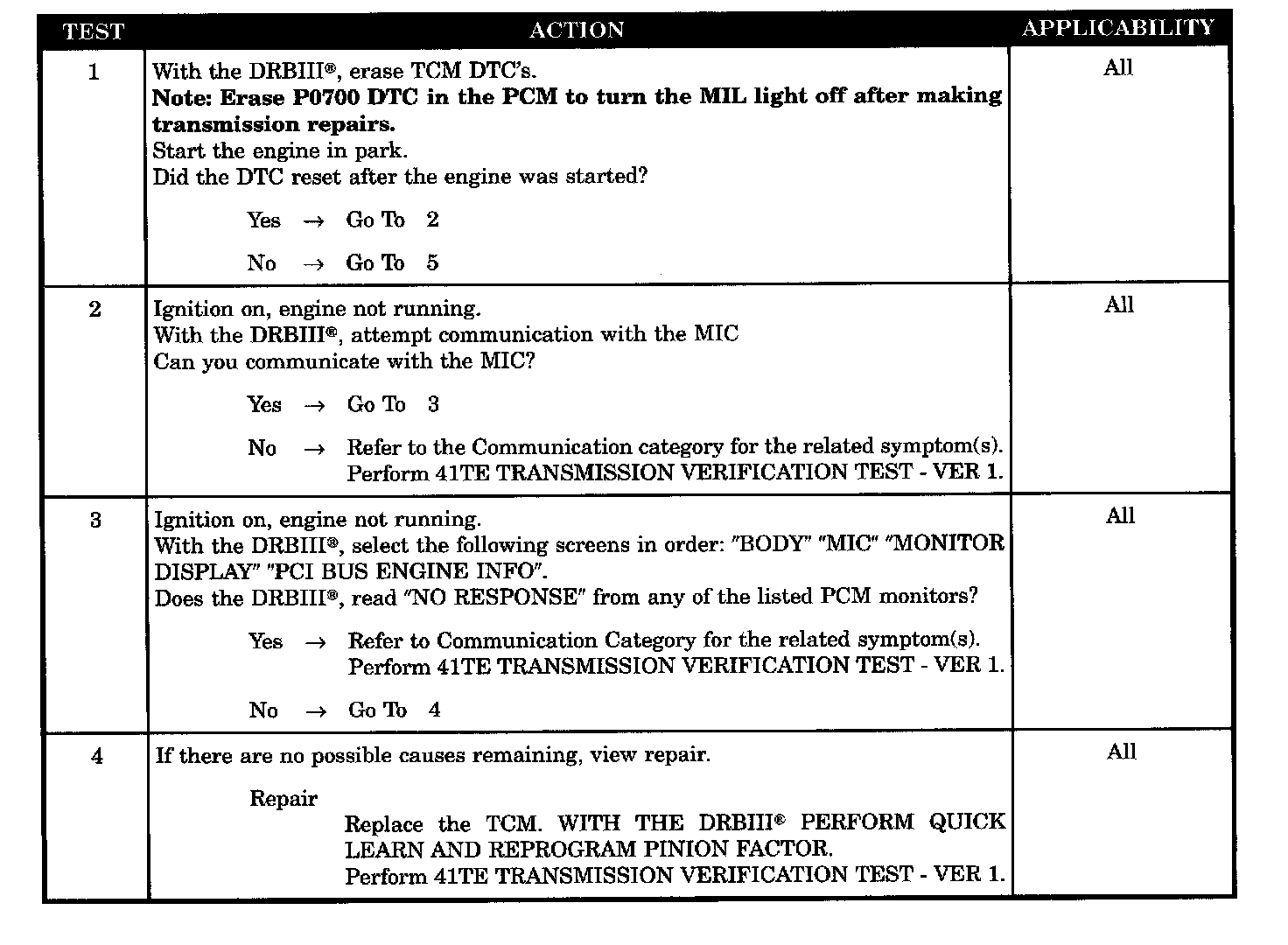 Set Condition: The DTC sets in approximately 20 seconds if no BUS messages are received by the TCM.