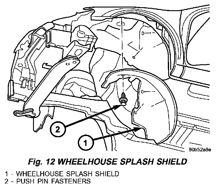 4. Remove the four push pin fasteners and remove the wheelhouse splash shield (Fig. 12).