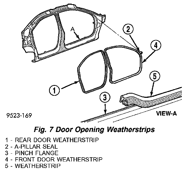 3. Pull weatherstrip from pinch flange around door opening (Fig. 7).